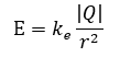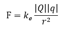 점전하 Q로부터 시험전하 q가 r의 거리만큼 떨어져있다고 가정하면 시험전하에 작용하는 전기력의 크기는 다음과 같다.