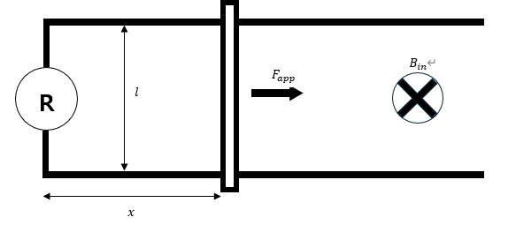 applied force와 크기가 같고, 방향이 반대인 magnetic force가 bar에 작용한다.