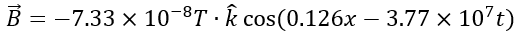 Write an expression for B with the correct unit vector, with numerical values for B_max, k, and ω, and with its magnitude in the form like below.