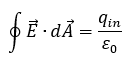 어떤 closed surface에서 Electric flux의 총량은 surface 내부의 총 전하량을 ε_0로 나눈 것과 같다는 법칙으로, 위 법칙이 갖는 물리적 의미는 가우스 법칙은 전기장이 전하 분포와 연관되어 있음을 보여준다.