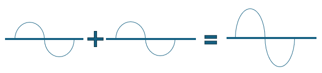 보강 간섭 (constructive interference)은 같은 위상의 두 파동이 중첩될 때 일어나는 간섭이며, 마루와 마루 또는 골과 골이 만나 파동의 진폭이 더 커진다.