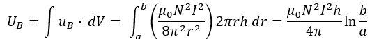 또한 toroid의 경우, 구한 stored energy와 아래 공식을 이용하여 self inductance를 구할 수 있다.